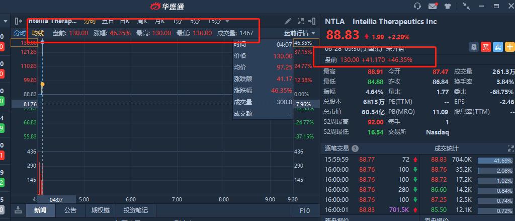 基因编辑公司Intellia Therapeutics(NTLA)盘前涨超46%,此前,Intellia Therapeutics(NTLA.US)和再生元(REGN.US)公司联合宣布,在研CRISPR体内基因组编辑疗法NTLA-2001在1期临床试验中获得积极结果。单剂NTLA-2001导致血清中的转甲状腺素蛋白水平(TTR)平均下降87%,在第28天TTR降低幅度最大可达96%。