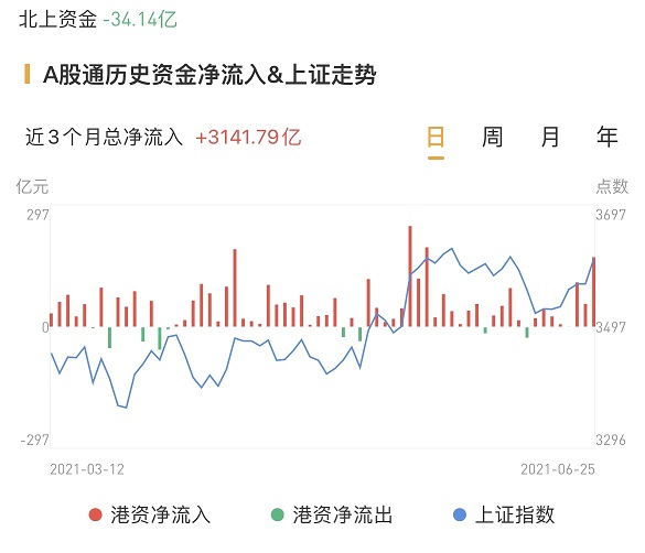 北上资金今日净流出34.14亿元,上周五为净流入超56亿元。