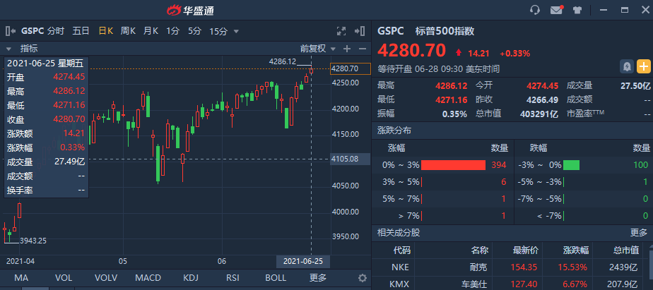在标准普尔500指数刚刚结束了其二月以来,最好的一周,上周五收4,280.70点,创历史新高。上周道指收涨3.4%,是自三月中旬以来的最好单周表现。