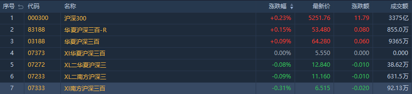 沪深300指数收涨0.23%。其中,华夏沪深三百ETF(03188.HK)涨0.09%,成交额约9365万港元;华夏沪深三百-R(83188.HK)涨0.15%,成交额达855万港元。