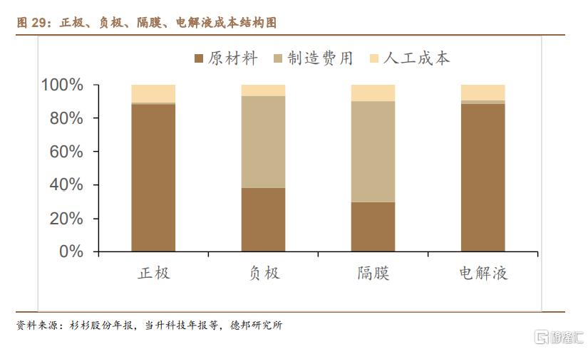 动力电池生产环节,材料成本约占80%,工费成本约20%。