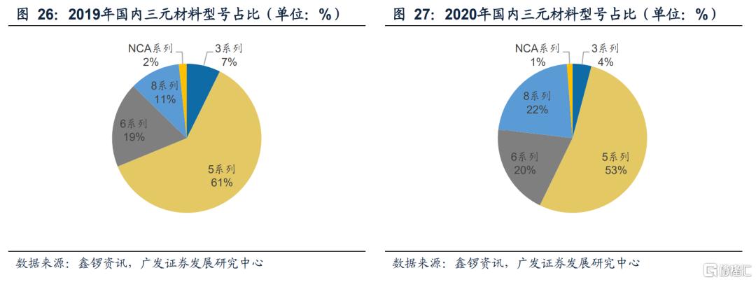 2020年,国内高镍三元正极材料(NCM8系及NCA)渗透率迅速提升,三元正极出货23.6万吨,其中高镍正极出货5.19万吨,占比达到22%,比19年提高了9个点。