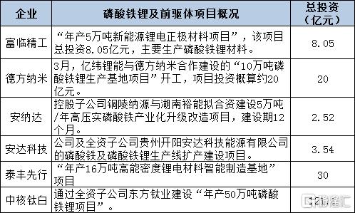 由于需求过于旺盛,铁锂正极的相关企业也开始了疯狂扩产,去年Q4以来总共有6家公司宣布了扩产或开工项目。