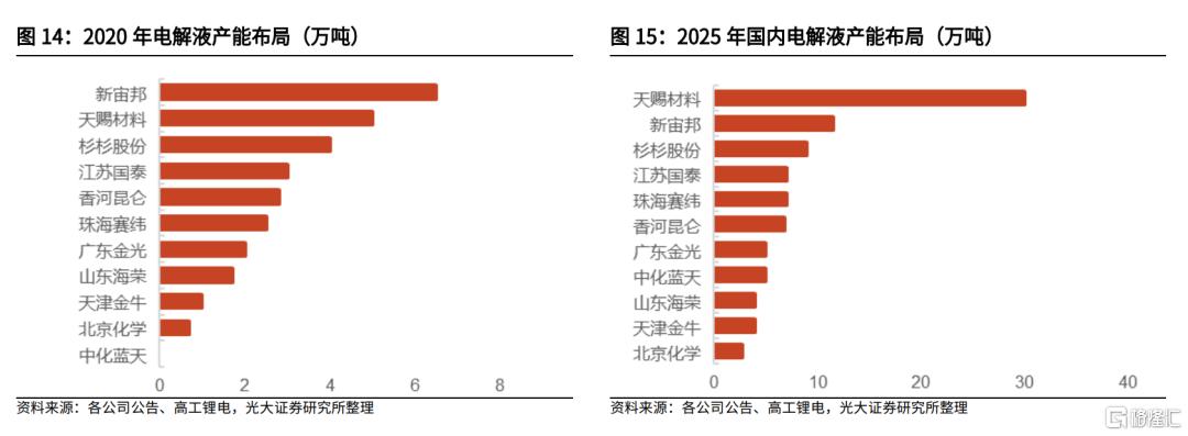 隔膜、电解液相对清晰,恩捷股份和天赐材料优势不小。