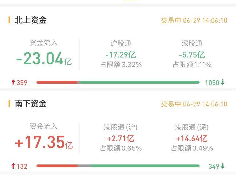 华盛资讯6月29日消息,目前,南下资金净流入17.35亿港元,其中港股通(沪)净买入2.71亿港元,港股通(深)净买入14.64亿港元。