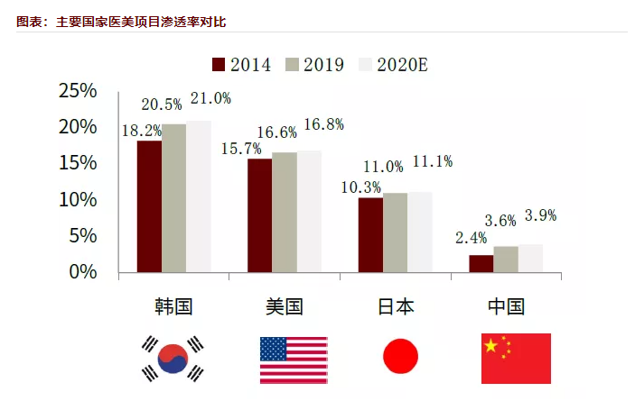 2015-2019年,中国医美市场复合增速为22.5%,正处于快速成长期。
