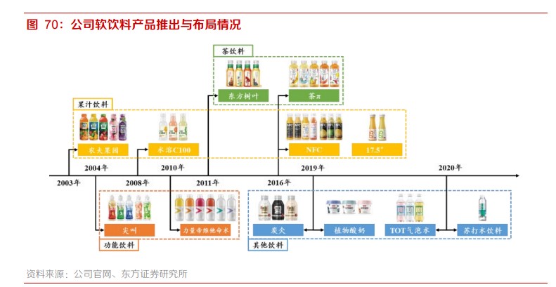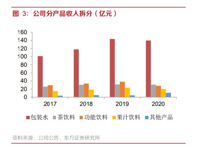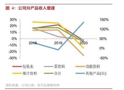 尽管近两年在苏打水、咖啡、植物酸奶等方面发力开拓,新品频出,但就目前来看,其营收占比仍然较低,2020年仅占总营收的4.6%。