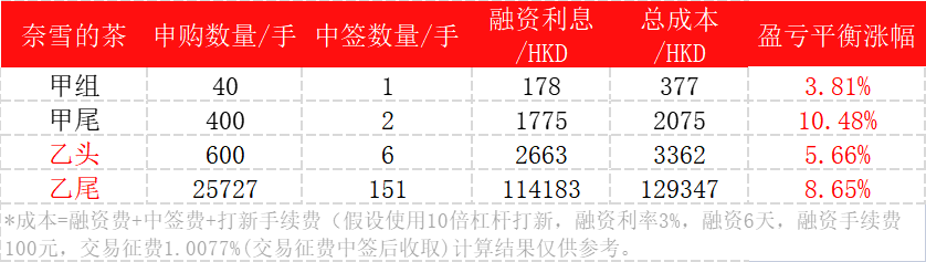 乙头申购600手,可获6-7手,按照6手算,涨超5.66%就有钱赚;