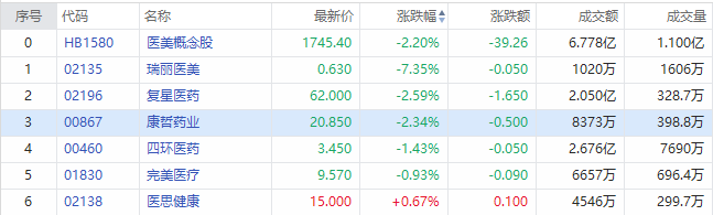 华盛资讯5月29日消息,医美概念股今日走势分化。截止发稿,瑞丽医美跌7.35%;复星医药跌2.59%;康哲药业跌2.34%;四环医药跌1.43%;完美医疗跌0.93%。