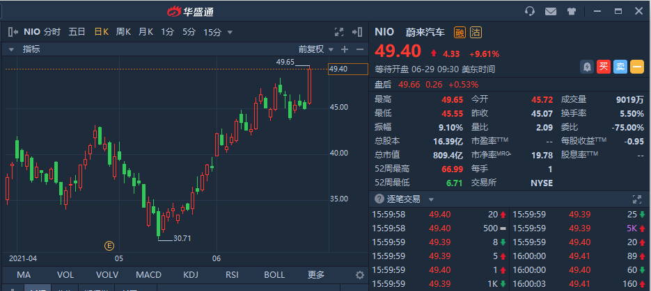 消息面上,蔚来近日并未发布任何重大利好消息,其网站上的最后一次新闻发布是6月1日,当时蔚来报告了5月份的交付情况,这些数字让投资者松了一口气,因为尽管全球汽车半导体的短缺已经搅乱了整个行业,但这家电动汽车公司仍然维持了第二季度的交付预测。