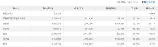 从业务结构上看,海尔的主打业务是“冰洗空”,其中冰箱占总业务利润的32.49%,洗衣机占26.11%,空调占13.38%,厨卫电器业务占总业务利润的16.17%。