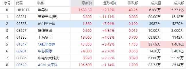 华盛资讯6月30日消息,半导体板块早盘拉升上涨,截止发稿,节能原件上涨11.11%;晶门半导体上涨7.94%;靖阳集团上涨4.84%;上海复旦上涨4.03%;华虹半导体上涨3.42%;中芯国际上涨2.78%;ASM太平洋上涨1.14%。