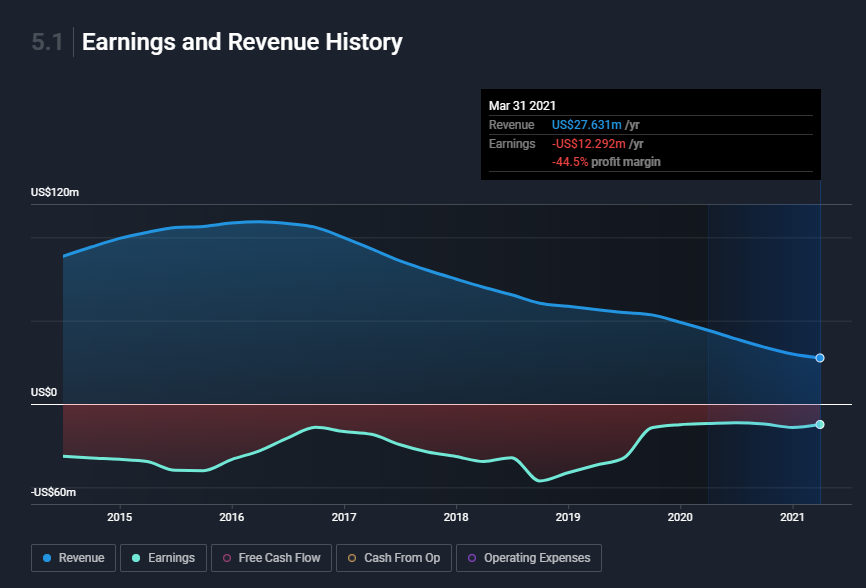 这种短期流动性表明,该公司或将轻松偿还债务,因为它的资产负债表看起来流动性充足。现金比债务多的事实可以说是一个很好的迹象,表明它可以安全地管理其债务。在分析债务水平时,资产负债表显然是一方面,但不能完全孤立地看待债务。因为MRIN需要盈利来偿还这些债务,所以在考虑债务问题时,盈利趋势绝对值得一看。