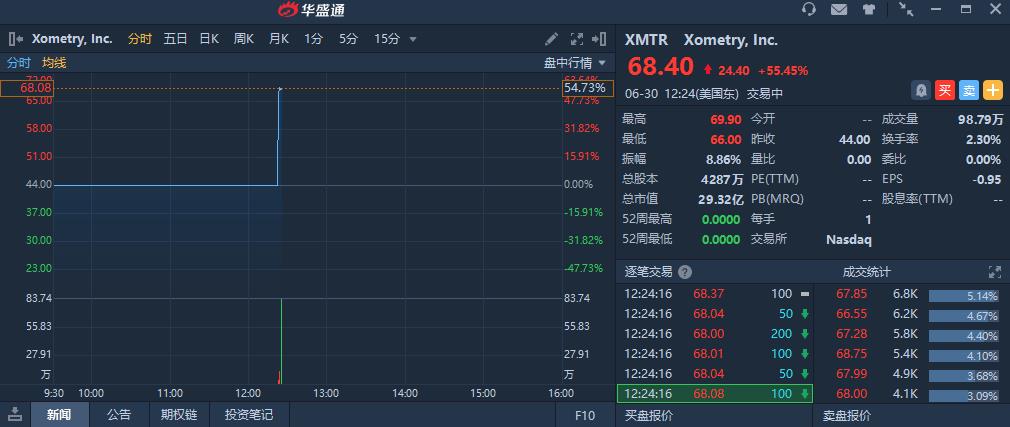 华盛资讯7月1日讯,3D打印及按需制造在线市场Xometry(XMTR.O)首日上市开涨超55%,最新市值为29.32亿美元,IPO定价44美元/股。