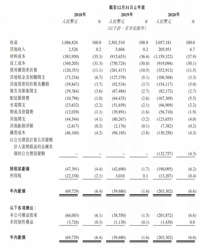 持续的扩张以及人员成本,是奈雪亏损的主要原因。在其开支成本中,除租金成本外,原材料成本占总支出的四成,人工成本则占三成。