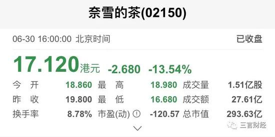 上市首日开盘价为18.86港元每股,较发行价19.8港元下跌4.75%,开盘总市值323.47亿港元;之后股价进一步走低,至今日收盘,股价报17.12港元每股,较发行价下跌13.54%,总市值293.63亿港元。