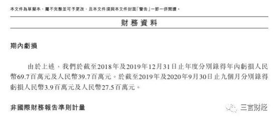 招股书显示,2018年-2019年及2020年Q3,奈雪的茶分别亏损约0.697亿元、0.396亿元、0.275亿元,累计亏损约1.368亿元人民币。