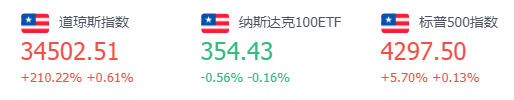 道指收盘上涨210.22点,或0.61%,报34502.51点;纳指跌24.38点,或0.17%,报14503.95点;标普500指数涨5.70点,或0.13%,报4297.50点。