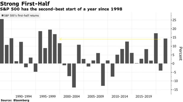 标普500再创收盘历史新高,交出1998年以来最强上半年成绩单