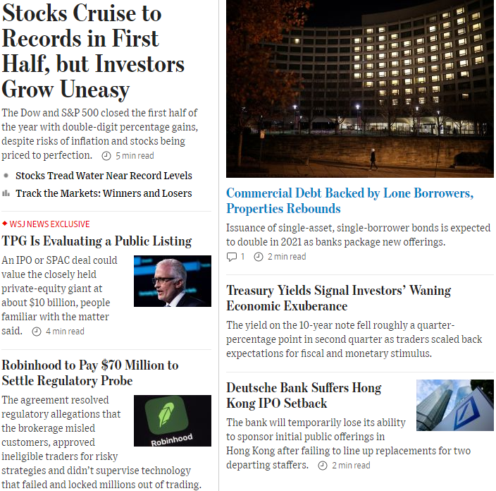 标准普尔 500 指数隔夜小幅上涨,成为自 1998 年以来美国股市表现最好的上半年之一,但近期病毒变种的蔓延,令市场对全球复苏的乐观情绪有所降温。标准普尔500指数和纳斯达克100指数合约早盘小幅走高。