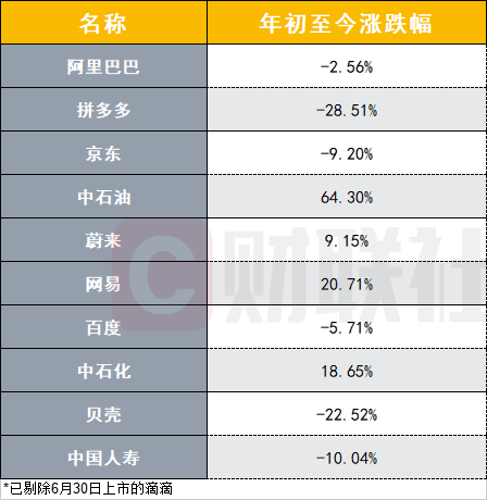 中概股方面,中石油、中石化受益于能源板块的强势涨幅居前,尤其是中石油上半年大涨63%。而电商股普遍表现不佳,其中拼多多上半年跌幅最大,达到超27%,京东紧随其后跌超9%,阿里巴巴跌超2%。