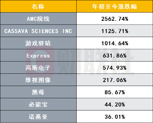 在这两波狂潮推动下,AMC和GME在上半年分别取得了超过2500%和1000%的疯狂涨幅。如果剔除全美股市值小于100亿美元的小市值股和2021年新上市的股票,AMC就是今年上半年涨幅最大的个股。