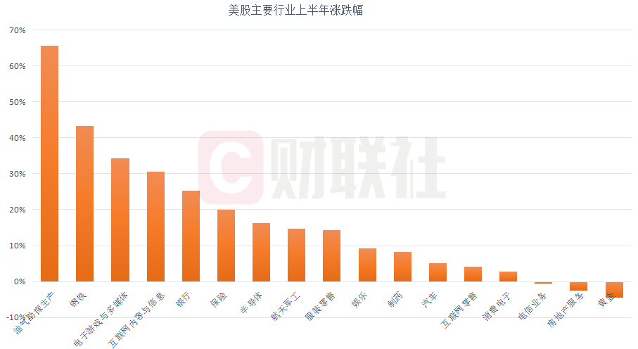在经济逐步开放的同时,美国总统拜登还积极推进大规模基建计划,钢铁等基建股因此上半年强劲上涨,其中纽柯钢铁上半年大涨80.4%,美国钢铁涨超40%。