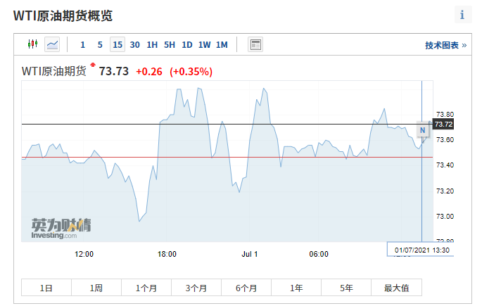 截至发稿,美国WTI原油期货价格为73.73美元。
