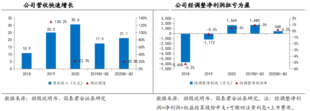 增速,是处于快速发展期公司最受市场关注的指标。公司在2020年实现营收30.6亿元,同比增长22.3%。其中的主力品牌奈雪的茶,增速更是高达25.3%,实现了28.7亿元的营收。而这些成绩,是在受疫情不利冲击的2020年实现的,可谓非常亮眼。除营收快速增长外,公司2020年经调整净利润达到1664万元,实现了转正。