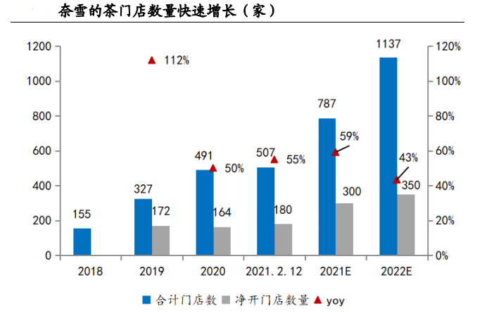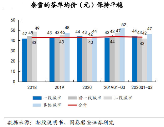 截至2020年底,奈雪覆盖了中国大陆66个城市,且单均价达到43元,均为高端茶饮企业第一名。随着疫情持续好转和开店数量逐步增加,奈雪将继续保持龙头优势。