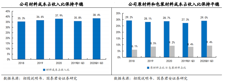 在从成本端来看,公司的主要成本来自原材料和人力成本两方面。而在茶饮行业,通常无法将材料成本的价格波动立即转嫁给客户,因此公司采用了原产地直采、统一采购、积极监测等措施,严格控制采购成本。近年来,公司材料成本占收入比得以保持平稳。
