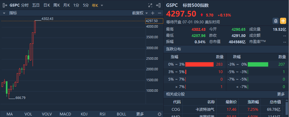 随着6月份的结束,标普500指数在2021年上半年上涨了14.4%,成为1998年以来美股表现最好的上半年之一,只有2019年上半年17.4%的增幅比它更大。
