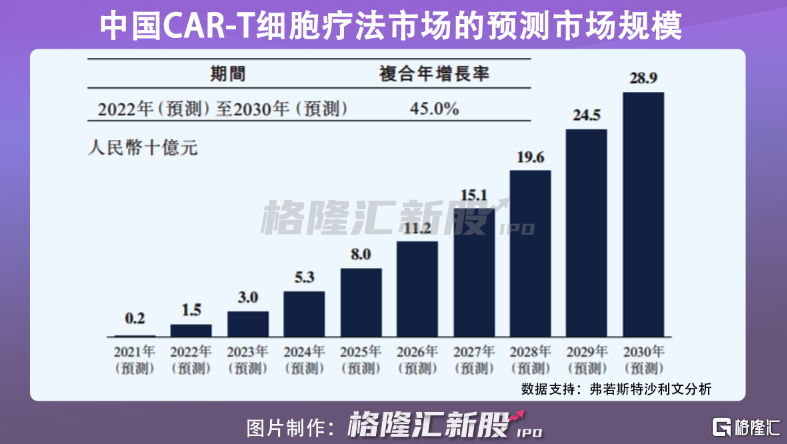 国内CAR-T疗法的市场规模在2021年为2亿元人民币,至2024年预计将达到53亿元人民币,并进一步增长至2030年的289亿元人民币,2022年至2030年复合年增长率为45.0%。