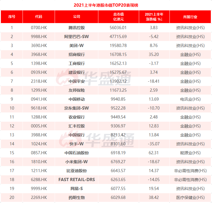 在上半年整体呈现震荡的港股市场中,依旧跑出了不少涨幅惊人的大牛股,同时也有一些公司由于遭遇“黑天鹅”回撤惨烈,而为投资者最为熟悉的大市值“蓝筹股”们谁的表现最好,华盛为您详细盘点一下。