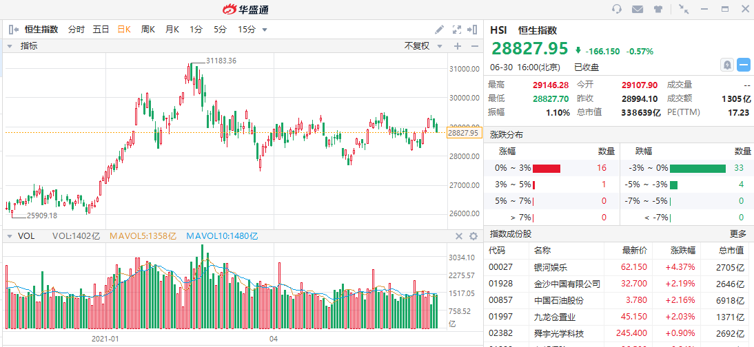 在上半年港股市场,恒生指数总涨幅为5.77%,主要有香港金融、地产等价值股构成的恒生香港35指数累涨10.77%,恒生中国企业指数和恒生科技指数则分别跌0.46%和2.99%。