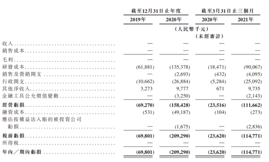 《招股书》显示,2019年、2020年,以及2021年第一季度,微创医疗机器人分别录得亏损净额6980.1万元、2.09亿元,以及1.15亿元。微创医疗机器人在《招股书》中解释称,亏损主要由于公司的研发成本及行政开支所致。