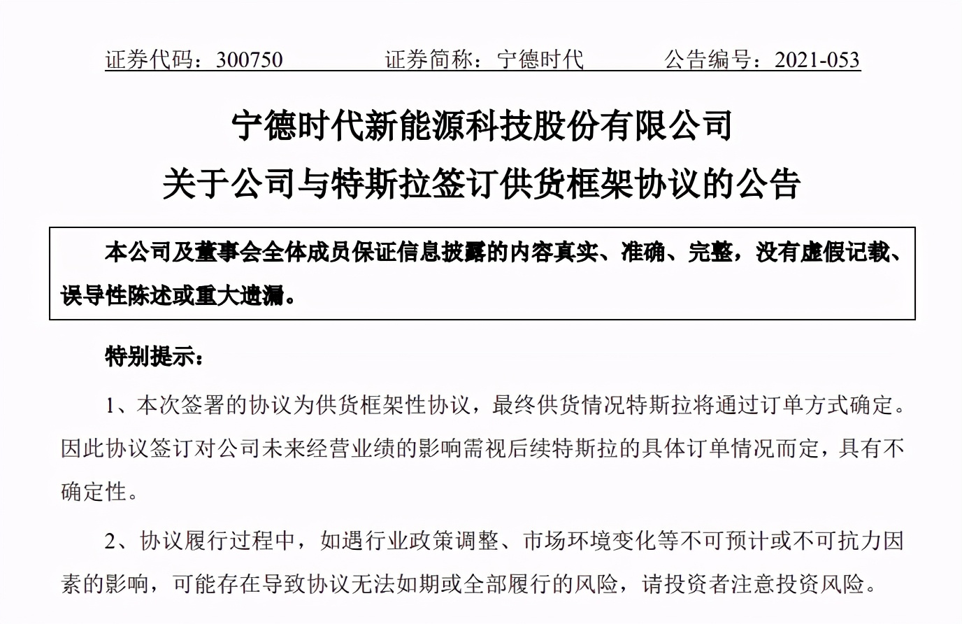 6月25日,宁德时代与特斯拉签订协议约定,拟将于2022年1月至2025年12月期间向特斯拉供应锂离子动力电池产品。