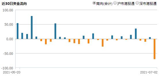 南下资金净流出港股 70.45亿港元,上周为净流入超 35亿港元;