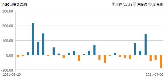北上资金净流出A股86.03亿元,上周为净流入A股141亿元;