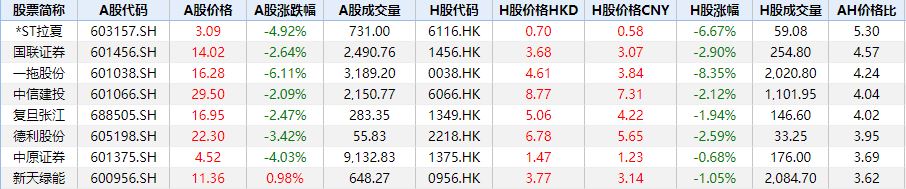 个股方面,*ST拉夏、国联证券、一拖股份、中信建投、复旦张江、德利股份、中原证券和等个股位列沪港通溢价榜前列,投资者可关注相关个股估值回归机会。