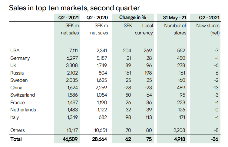 这意味着,中国内地市场在H&M全球市场中排名第六。然而在今年第一季度,中国内地是H&M集团仅次于美国和德国的第三大市场,占该公司销售额的约6%,也是H&M在疫情期间销售额唯一增长的主要市场。