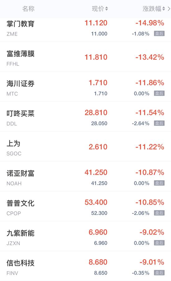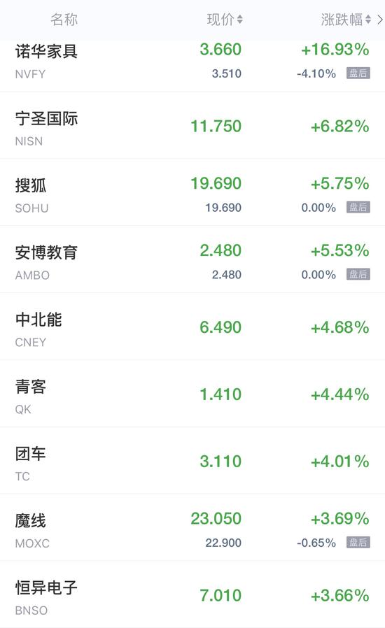(截图来自新浪财经APP 行情-美股-中概股热门板块)下载新浪财经APP