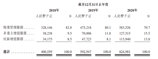 业务分部方面,和其他多数物企一样,俊发七彩服务的业务模式也主要为三大块:物业管理服务、非主业增值服务、社区增值服务。