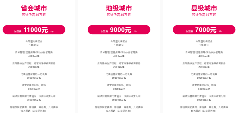 目前,已成气候的头部品牌的加盟费,更不是一个小数目。
