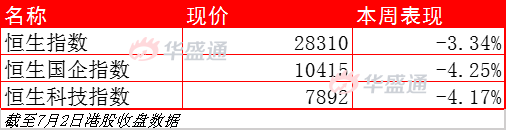 恒生指数本周跌3.34%,报28310;恒生科技指数本周跌4.17%,报7892;国企指数本周跌4.25%,报10415。周五港股主要指数均大幅收跌,三大指数全天呈单边下跌行情,科技股领衔下跌,热点板块近乎全挫,市场情绪比较低迷。