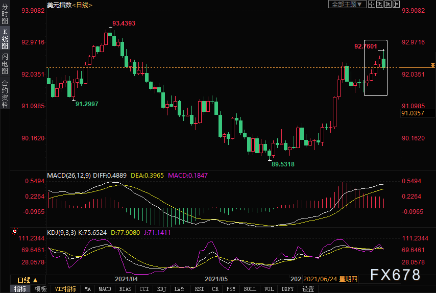 本周上涨0.48%,一度创下近三个月新高,主要受到一系列强劲的经济数据支撑,唯一的不足是6月失业率上涨0.1%,这令美元在周五冲高回落。欧系货币方面,欧元跌0.59%,英镑跌0.4%,欧元区和英国的经济都受到新毒株德尔塔的挑战。商品货币同样集体下跌,澳元跌幅居前跌0.84%,纽元跌0.65%,加元小跌0.25%。另外,日本疫情仍然严峻,奥运会可能空场举行,日元跌创15个月新低,瑞郎也下跌0.39%。