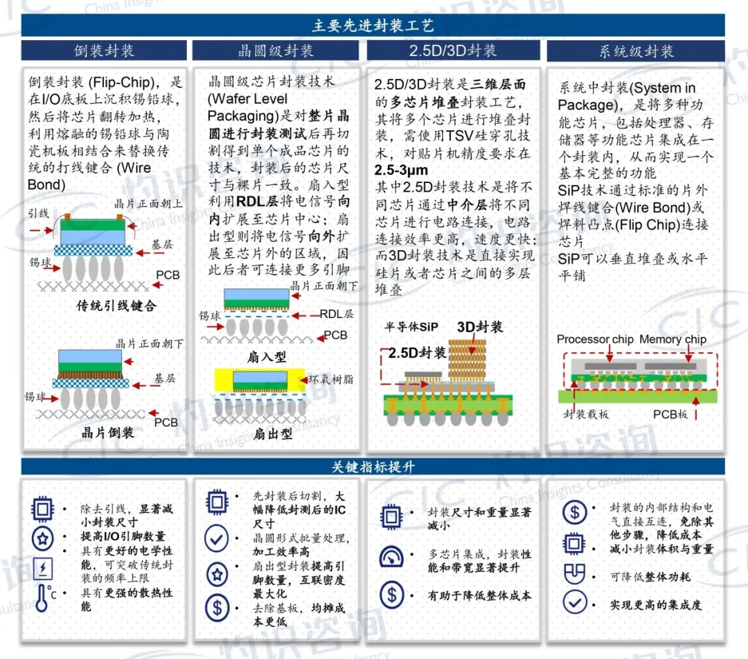 目前主要先进封装工艺的介绍及主要作用: