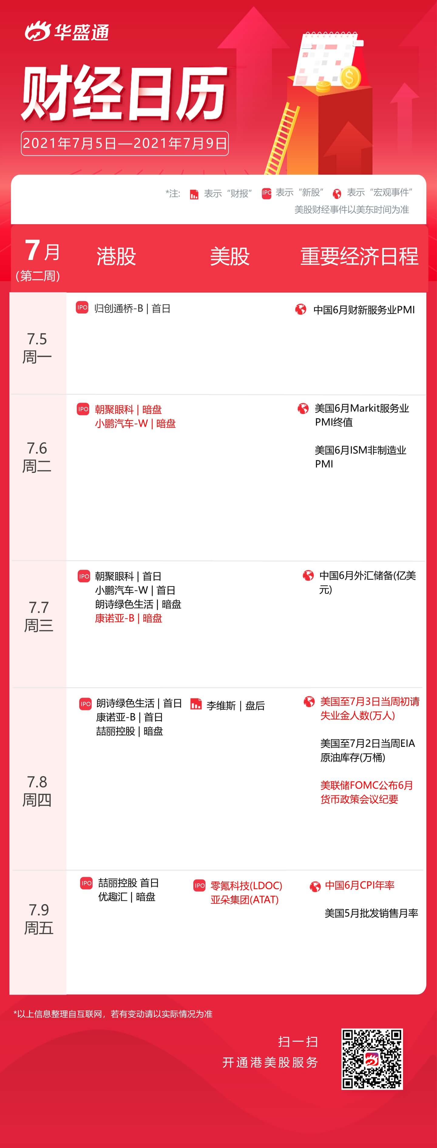 以上即为下周港美股及宏观资讯一览,祝新的一周投资顺利~