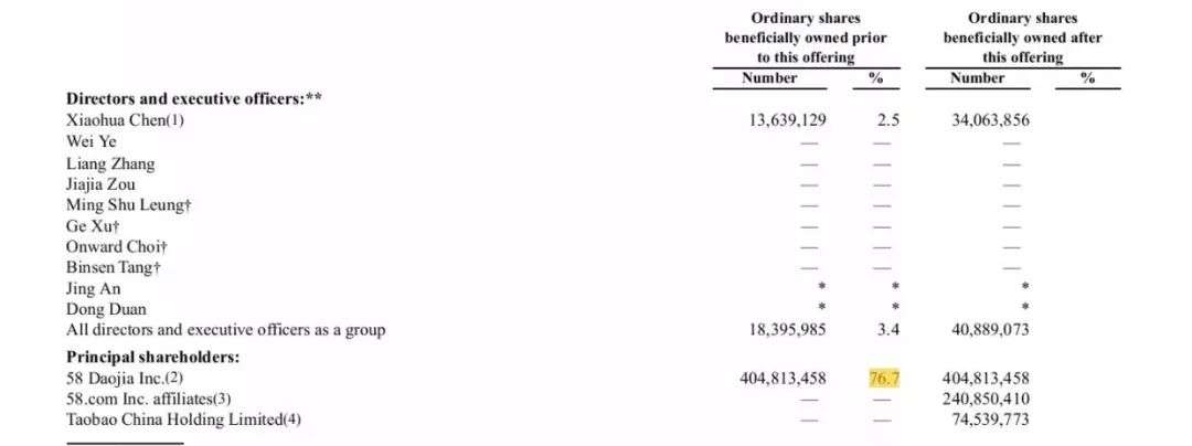 根据招股书,天鹅到家的第一大股东正是58同城控股的58到家集团,持股76.7%。创始人陈小华仅持股2.5%,屈尊为第三大股东,管理层共计持股3.4%。其次淘宝也是重要股东之一。