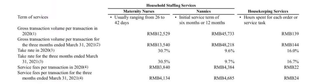 目前天鹅到家的主要收入,将近90%依赖于其家庭服务,约7%的收入来源于技能升级培训。根据招股书披露,平台主要对月嫂(26-42天时长,)、保姆(3个月或6个月时长)等劳动者进行抽佣,前者抽佣30%左右,后者9.5%左右。